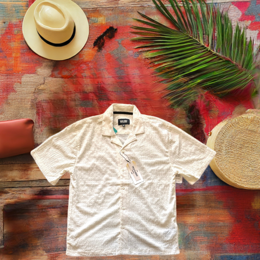Camisa de hombre Malibu, tela con textura color "snow white".