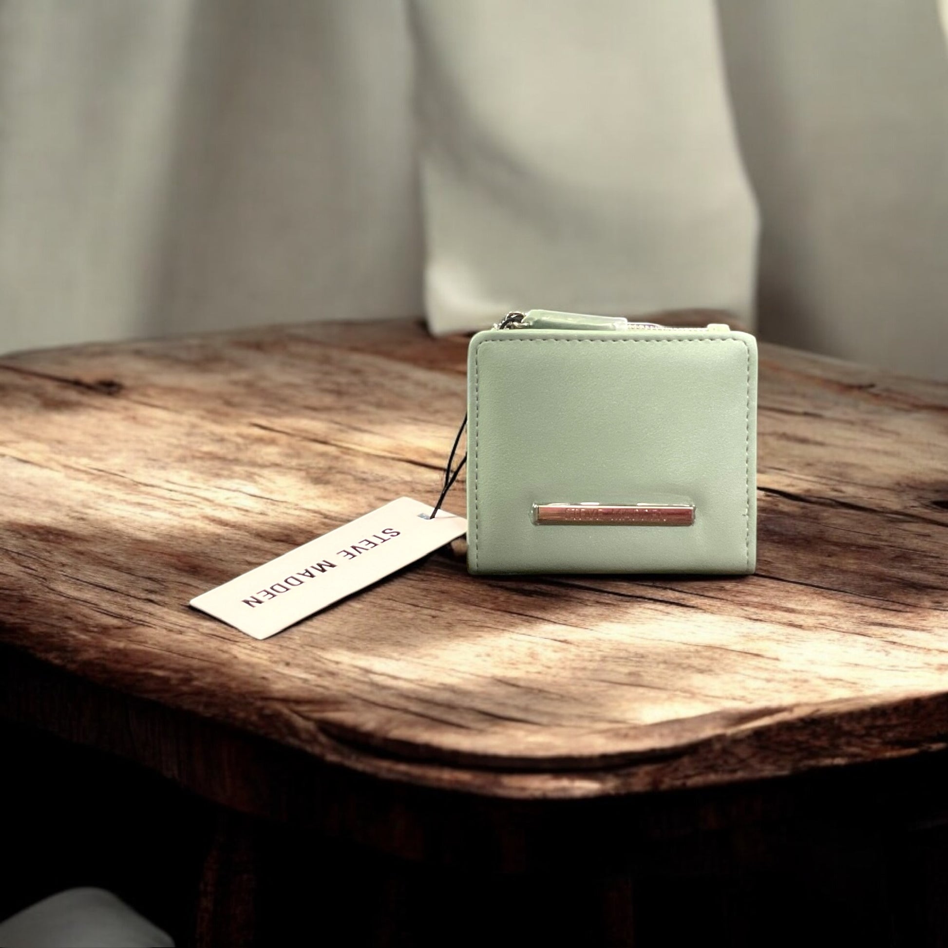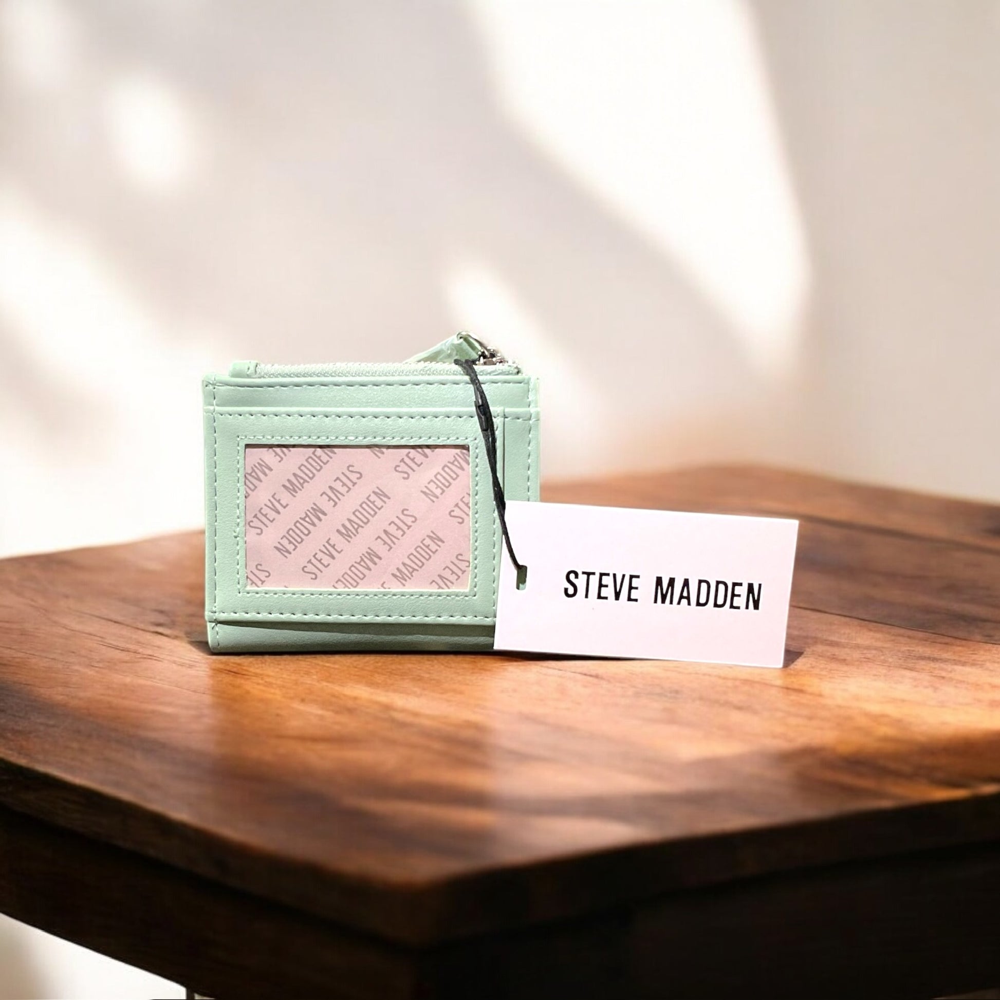 Tarjetero de mujer Steve Madden French Wallet color menta, faux leather.